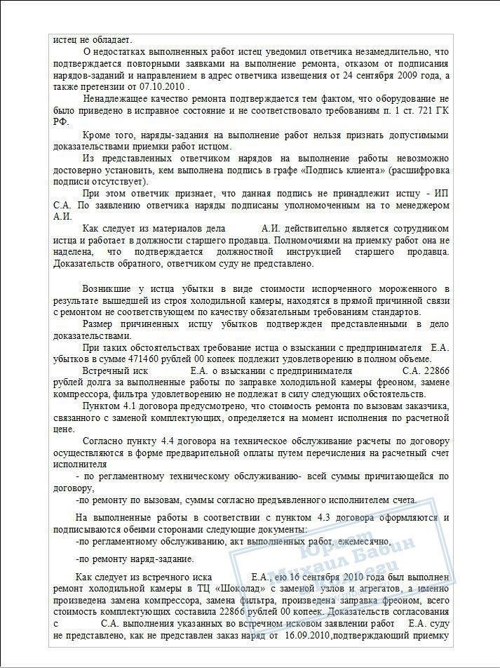 - Необоснованность встречного иска. Ответчик не представил доказательств согласования с истцом работ по замене компрессора и фильтра, а также надлежащей приёмки этих работ. Выставленный счёт на предоплату не подтверждал факт выполнения работ, поскольку заказчик отказался от их проведения, привлекая для ремонта третье лицо.