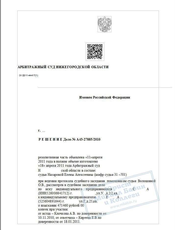 Арбитражный суд Нижегородской области полностью удовлетворил первоначальный иск: