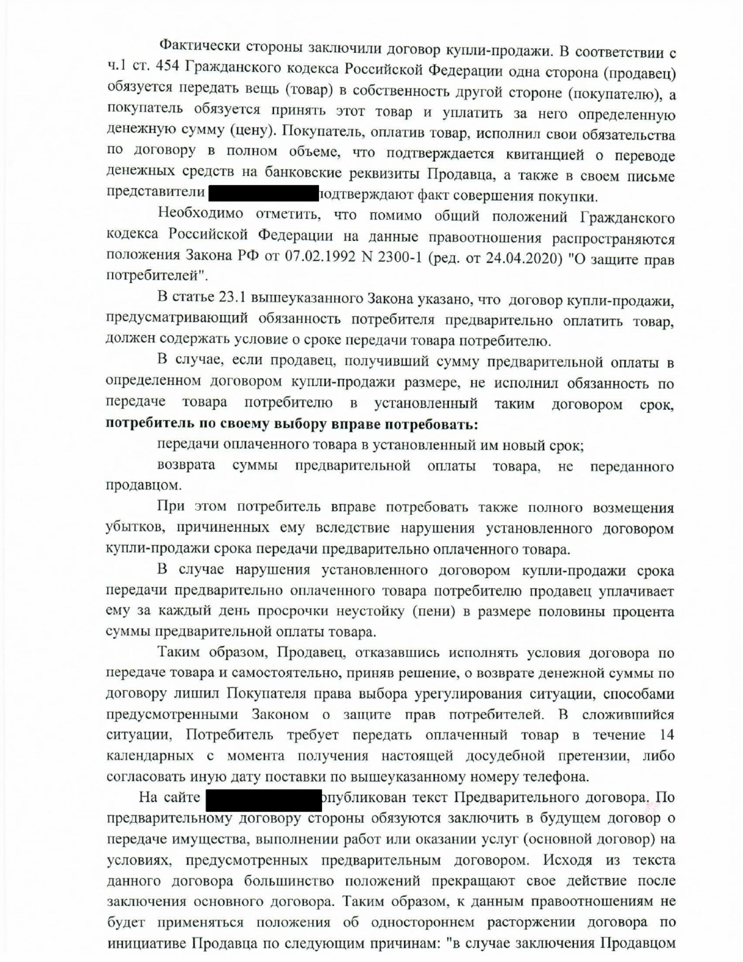 В целях мирного урегулирования вопроса, специалисты нашей компании обратились с досудебной претензией в адрес компании с требованием о передаче соответствующего товара клиентке.