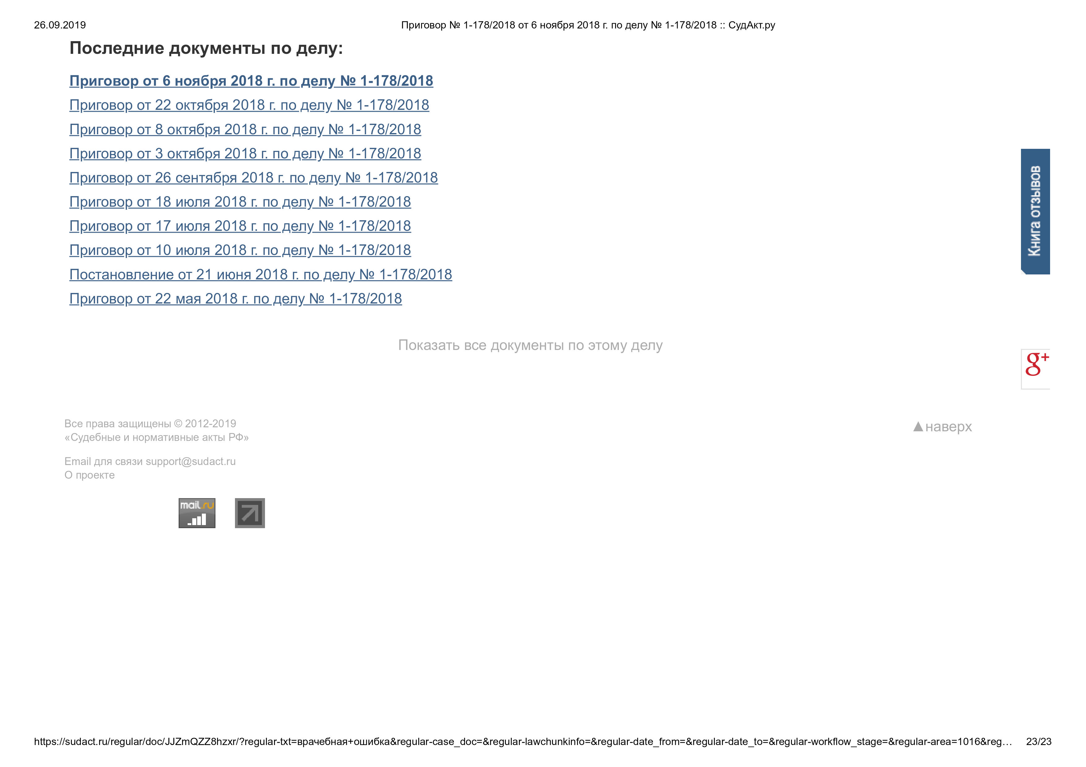 Суд признал врача виновным по ч. 2 ст. 109 УК РФ (причинение смерти по неосторожности). Назначено наказание: ограничение свободы и лишение права заниматься врачебной деятельностью на 1 год.