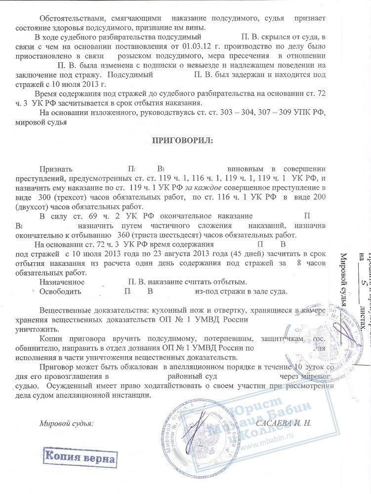 В рамках правовой помощи подсудимому руководителем нашей компании были собраны и представлены суду все факты и доказательства, позволяющие смягчить приговор в отношении П.В.