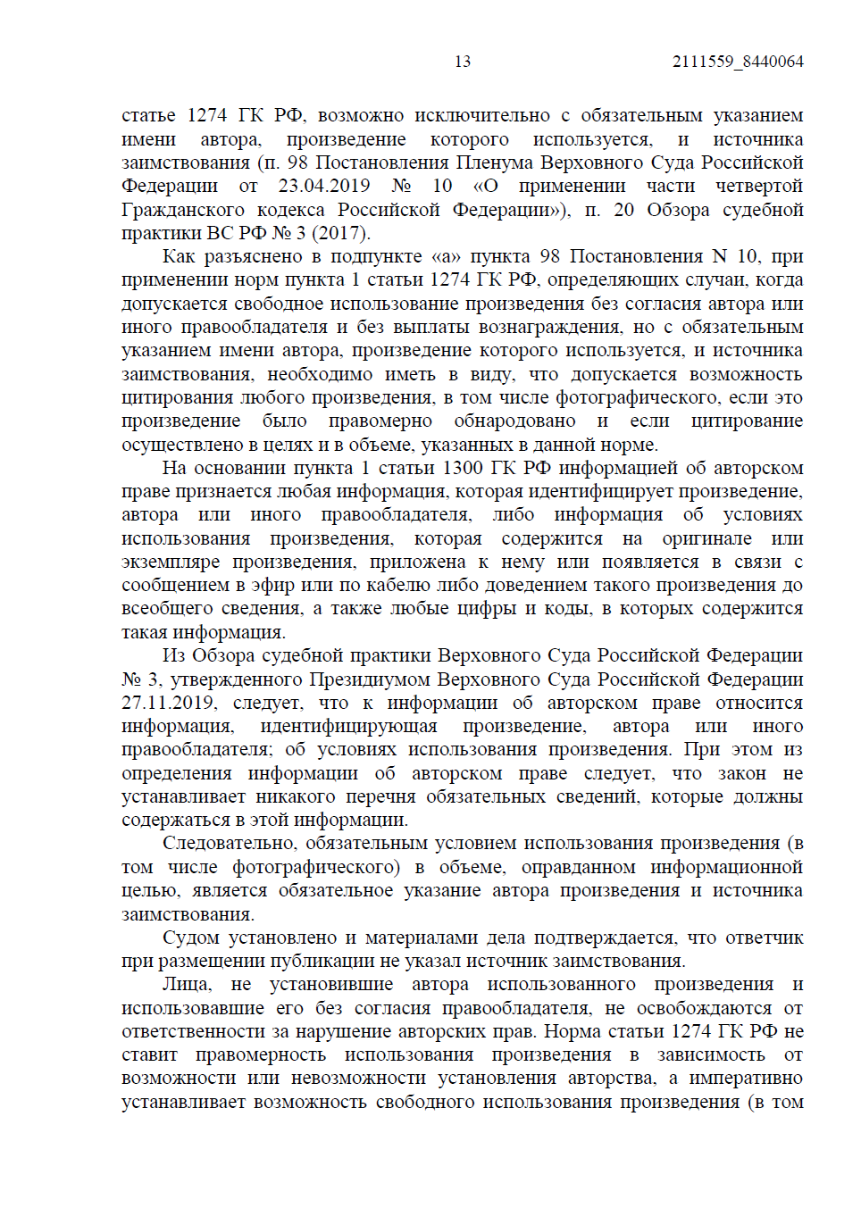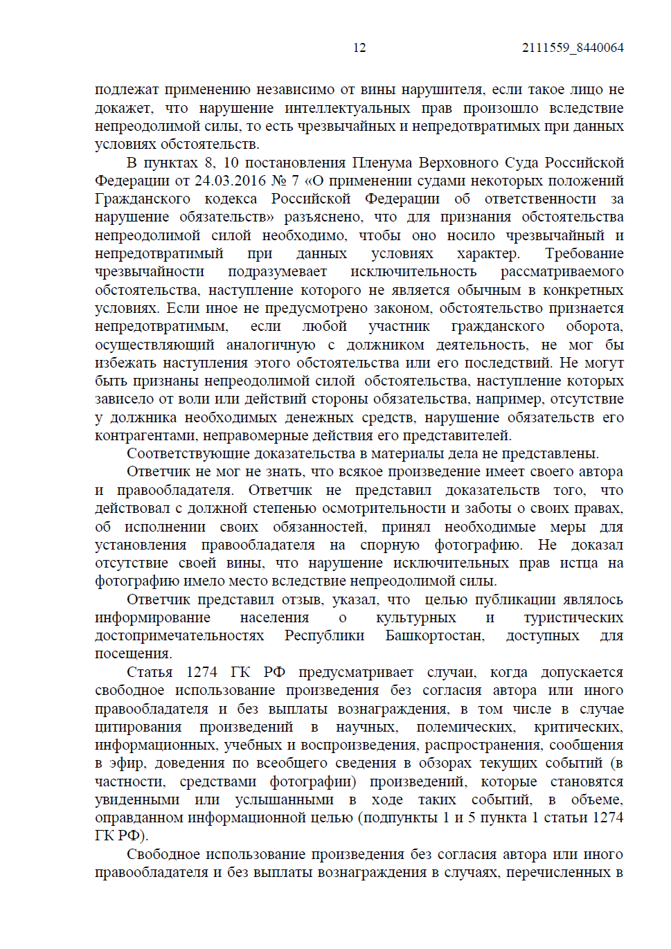 • Ответчик настаивал, что публикация носила информационный характер (цитирование). Однако мы указали суду на императивное требование ст. 1274 ГК РФ: любое свободное использование возможно только с обязательным указанием имени автора и источника заимствования, чего сделано не было.