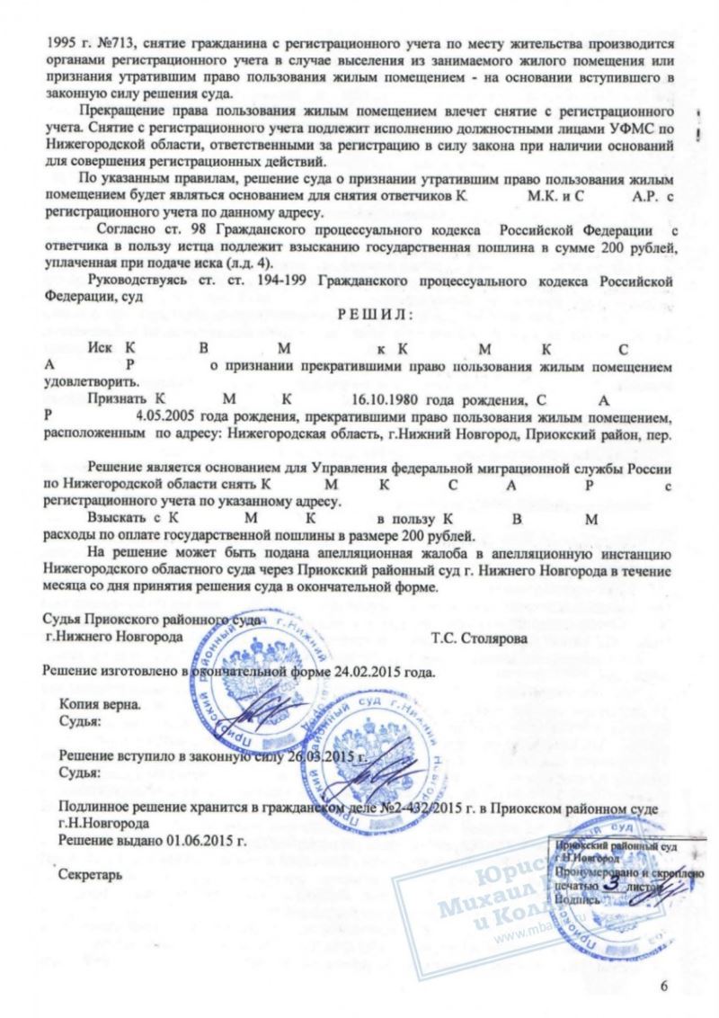Пенсионер К. в течении 8 лет был вынужден жить в квартире со своей взрослой падчерицей, которая сделала совместное проживание с ней невыносимым. Она регулярно распивала спиртные напитки, приводила мужчин, устраивала скандалы. При этом родственница нигде не работала, и не только не платила за квартиру, но и воровала у пожилого мужчины продукты, которые он покупал на свою небольшую пенсию. К. не мог выселить женщину из квартиры, так как с нею был прописан её несовершеннолетний сын. В опьянении она вела себя агрессивно, так что К. начал опасаться за свою жизнь и здоровье. Потеряв терпение, он обратился за помощью к нашим юристам.