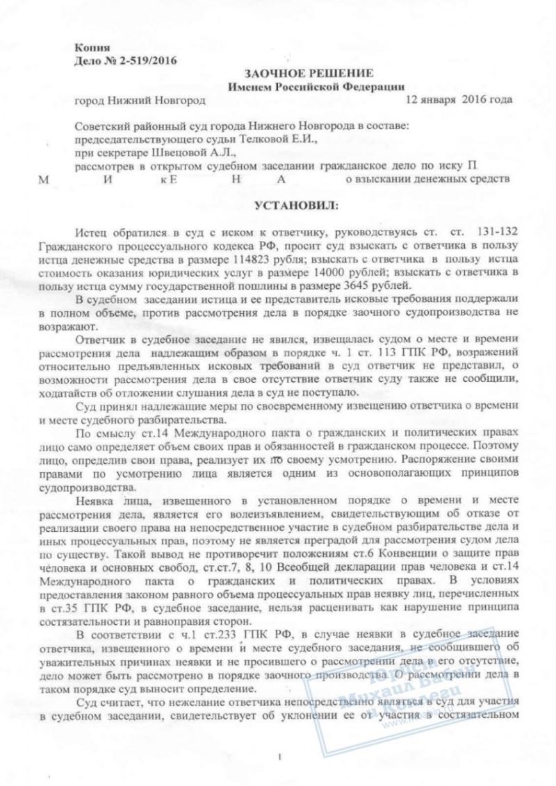 Согласно данным, полученным судом, расходы М.П. составили 230 000 рублей. Юрист помог взыскать половину этой суммы с Н.Е. Кроме того, на нее были возложены все судебные расходы